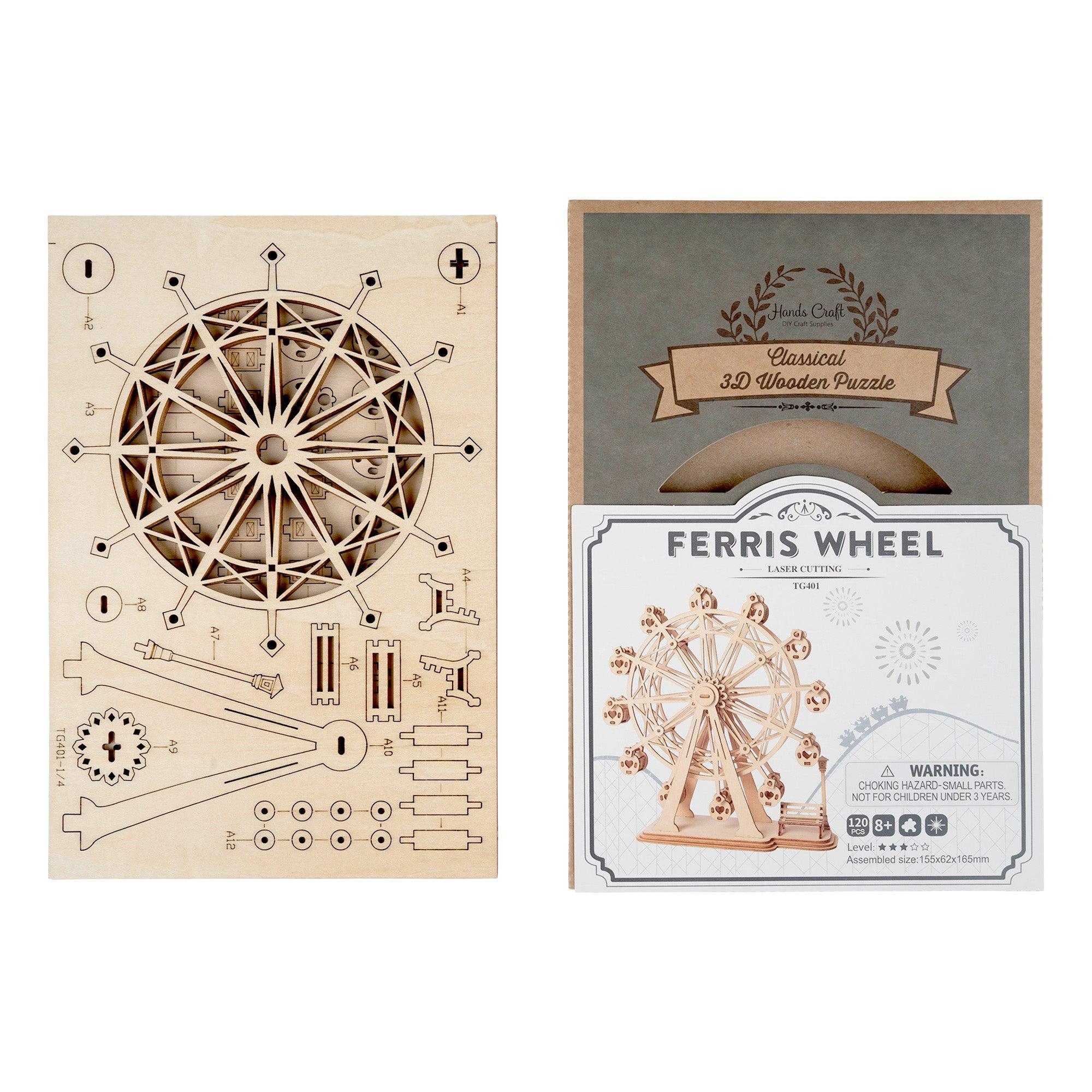 Unleash your creativity with this captivating DIY wooden miniature Ferris Wheel puzzle. Made from high-quality, eco-friendly wood, the pieces are precision-cut to fit together easily without the need for glue or special tools. As you assemble the puzzle, you’ll not only create a charming model but also enjoy the satisfying challenge of bringing it to life.