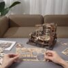 Marble Night City is an intricate 3D wooden puzzle that showcases an effective engineering design. Full of twists, turns, and spirals, this marble run is a thrill to watch! It is run completely by mechanical means, no battery or electricity needed. Marble runs incorporate various engineering mechanisms, such as turning cogwheels and spirals. Stimulates creativity, focus, fine motor skills, and patience. No tools or glue are required.