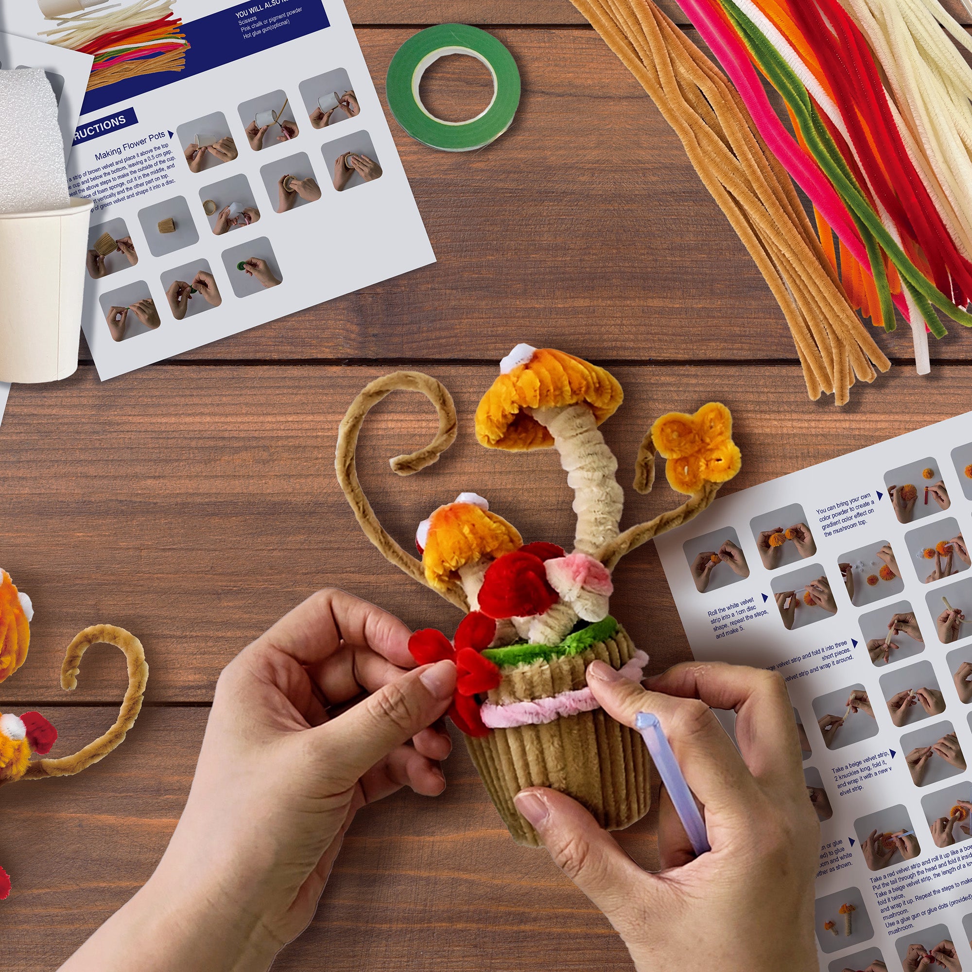 Sweet, quirky, and full of charm – this DIY kit includes everything you need to craft an adorable chenille mushroom cupcake.