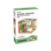 [ROOM SERIES] This miniature is a part of the plastic and modular Room series. Mix and match with other rooms or stores from this series to create a stackable tower or horizontal street full of bustling stores and quaint living spaces. Each product is made of 3 boards and can be stacked horizontally, vertically, or both forming an L-shape. [AMBIENT LIGHT] Light up your room with these miniatures, which comes with lighting and a battery that is neatly hidden in plain sight. Turn on and off the switch by short pressing the button and adjust the brightness by long pressing it. [EASY ASSEMBLY] Our easiest miniatures yet, these kits are made of durable plastic and don’t require any gluing or painting. Perfect for beginners and those who want an easy build, the Super Store series make great gifts for any occasion.**ROOF & DOORS SOLD SEPARATELY**