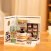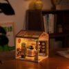[ROOM SERIES] This miniature is a part of the plastic and modular Room series. Mix and match with other rooms or stores from this series to create a stackable tower or horizontal street full of bustling stores and quaint living spaces. Each product is made of 3 boards and can be stacked horizontally, vertically, or both forming an L-shape. [AMBIENT LIGHT] Light up your room with these miniatures, which comes with lighting and a battery that is neatly hidden in plain sight. Turn on and off the switch by short pressing the button and adjust the brightness by long pressing it. [EASY ASSEMBLY] Our easiest miniatures yet, these kits are made of durable plastic and don’t require any gluing or painting. Perfect for beginners and those who want an easy build, the Super Store series make great gifts for any occasion.**ROOF & DOORS SOLD SEPARATELY**